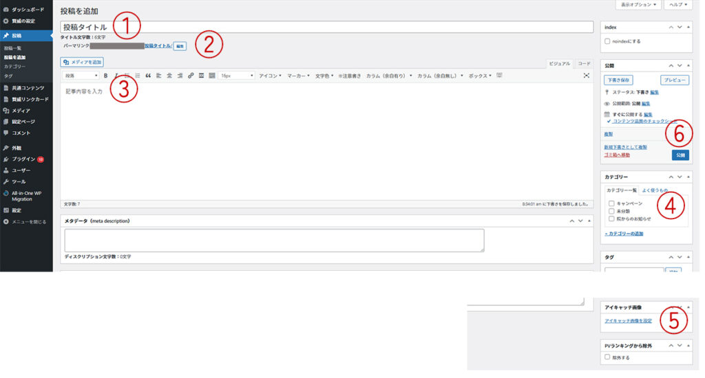 ②のパーマリンクの入力方法ですが、日本語でも問題ありませんが、推奨はアルファベットでの入力です。